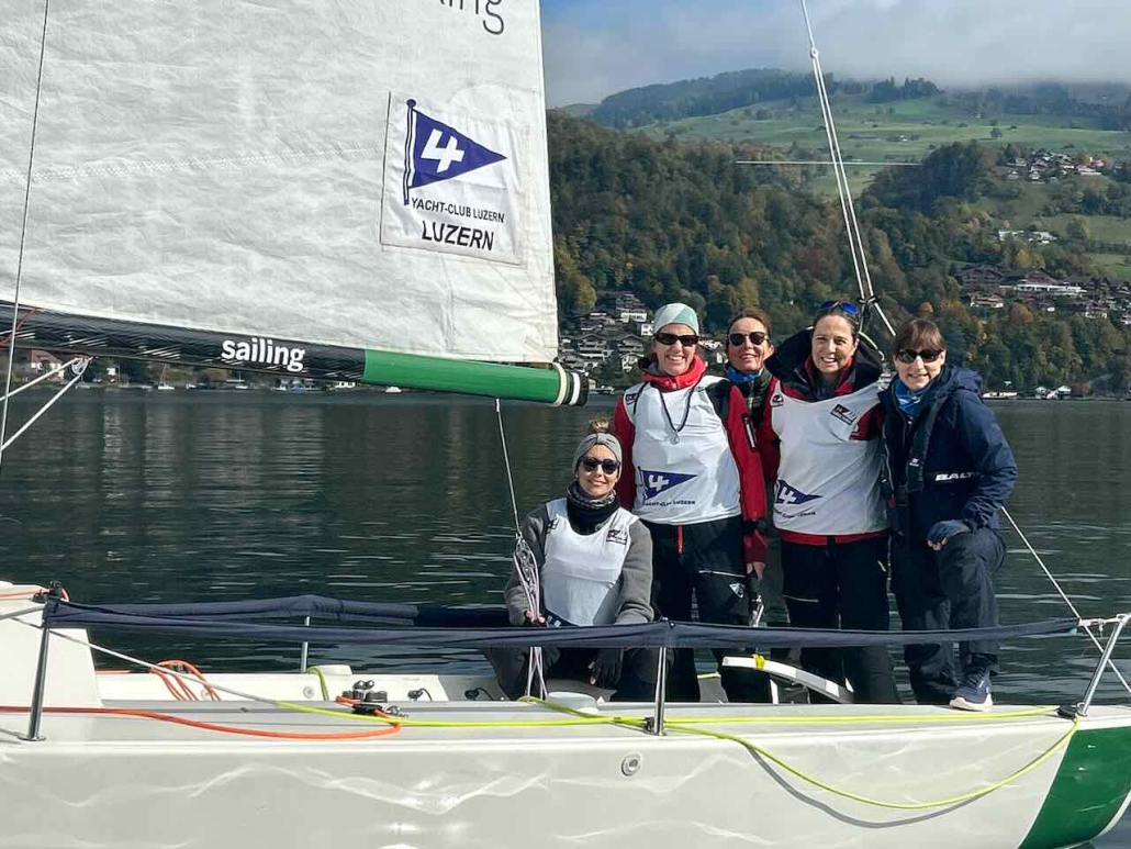 Es war ein Wochenende, das nicht so schnell vergessen gehen wird: Vom 17. bis 19. Oktober 2025 wagte sich der Yacht-Club Luzern erstmals mit einem reinen Ladies Team an den Swiss Sailing League Heidi Cup auf dem Thunersee. Und was für ein Debüt es war! Die hochmotivierte Crew mit Sabine Brodbeck, Regina Herzog, Rita Krummenacher, Bianca Schmidt und Skipperin Stéphanie Rossé debütierte nicht nur am Swiss Sailing League Heidi Cup, sondern segelte überhaupt die erste richtige Regatta in dieser Besetzung; die Mehrheit der Mannschaft segelte sogar ihre erste Wettfahrt überhaupt. Die Vorfreude und die Nervosität vor dem Unbekannten waren unserem Team entsprechend deutlich anzumerken.