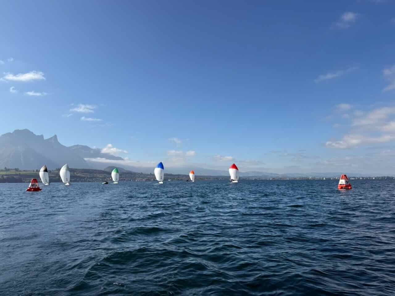 Für die noch Unerfahrenen im Team war jedes Rennen ein intensiver Lernprozess. Wie oft müssen wir um die Bojen? Was bedeutet denn jetzt diese Flagge? Aha, mit der roten Flagge können wir protestieren – aber weshalb überhaupt? Die Lernkurve ging in den kurzen und intensiven, als Umpired Fleet Racing durchgeführten Läufen steil nach oben – wir sammelten unschätzbare Erfahrungen und machten die (aller-)meisten Fehler nur einmal. Die Stimmung im Team war durchwegs positiv. Und dann der Höhepunkt: Ein Laufsieg in Flight 4 mit riesigem Abstand! Auf dem Wasser sah das dann so aus: